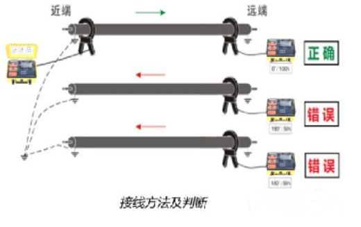 對于電纜識別,我們可以分為帶電識別和帶電識別。在尋找運行電纜時,我們采用電纜標(biāo)識符的耦合方式,發(fā)射鉗夾住電纜的起始端,通過信號發(fā)射器向電纜饋送周期性的單極電壓脈沖;電纜停電或未通電時,可采用直接連接方式,信號發(fā)射器通過導(dǎo)線直接向電纜銅芯施加脈沖信號。在末端測量時,我們使用接收鉗夾住電纜。當(dāng)從測量電纜中檢測到脈沖信號時,接收器的刻度盤指針將偏轉(zhuǎn)到“正確”一側(cè),否則,該電纜的刻度盤指針將指向“錯誤”一側(cè)。在許多電纜中,我們可以通過排除法測量和識別來找到所需的電纜。搜索方法如下: